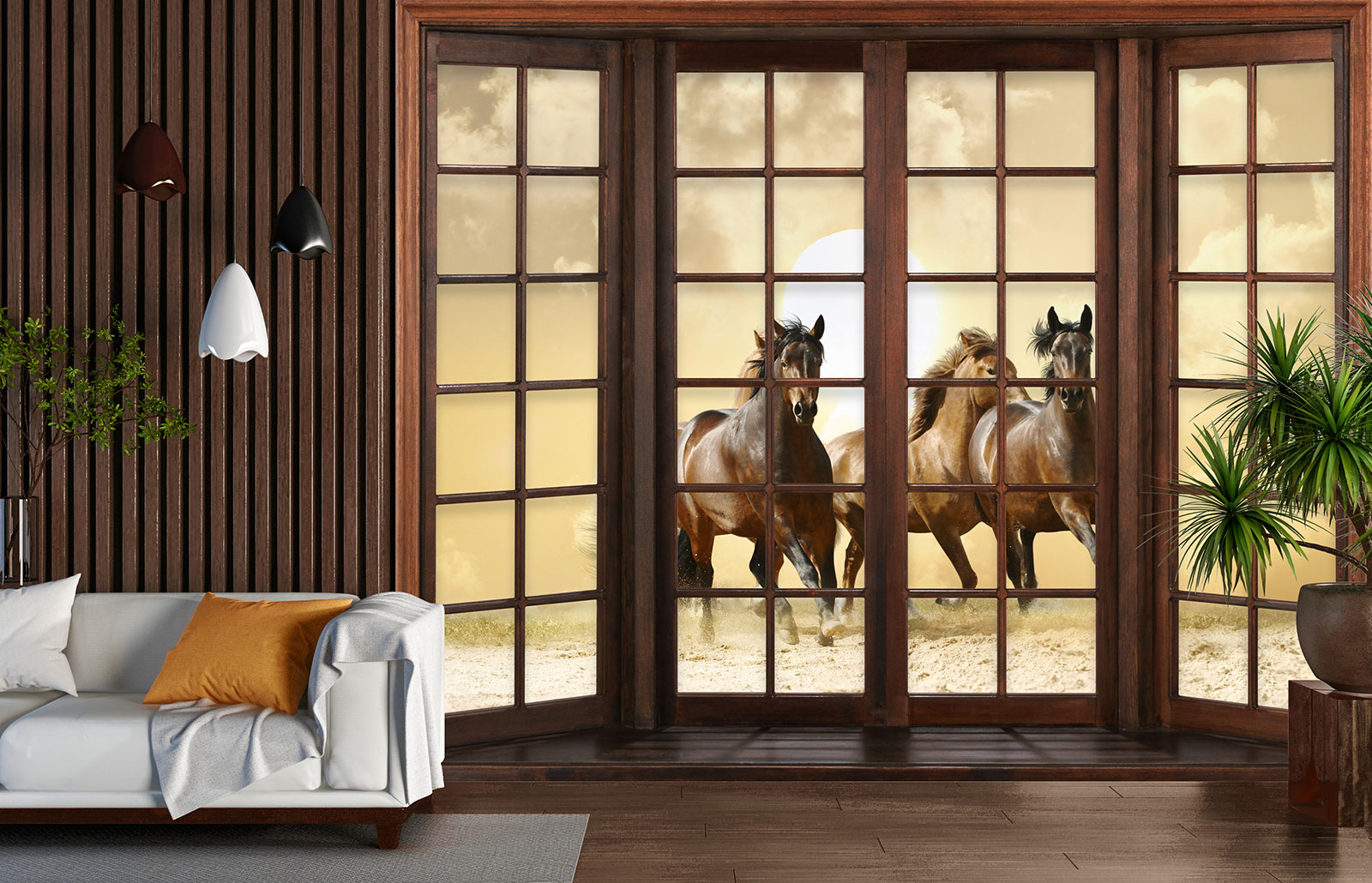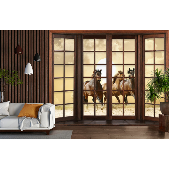 Papel pintado panorámico trampantojo - Caballos