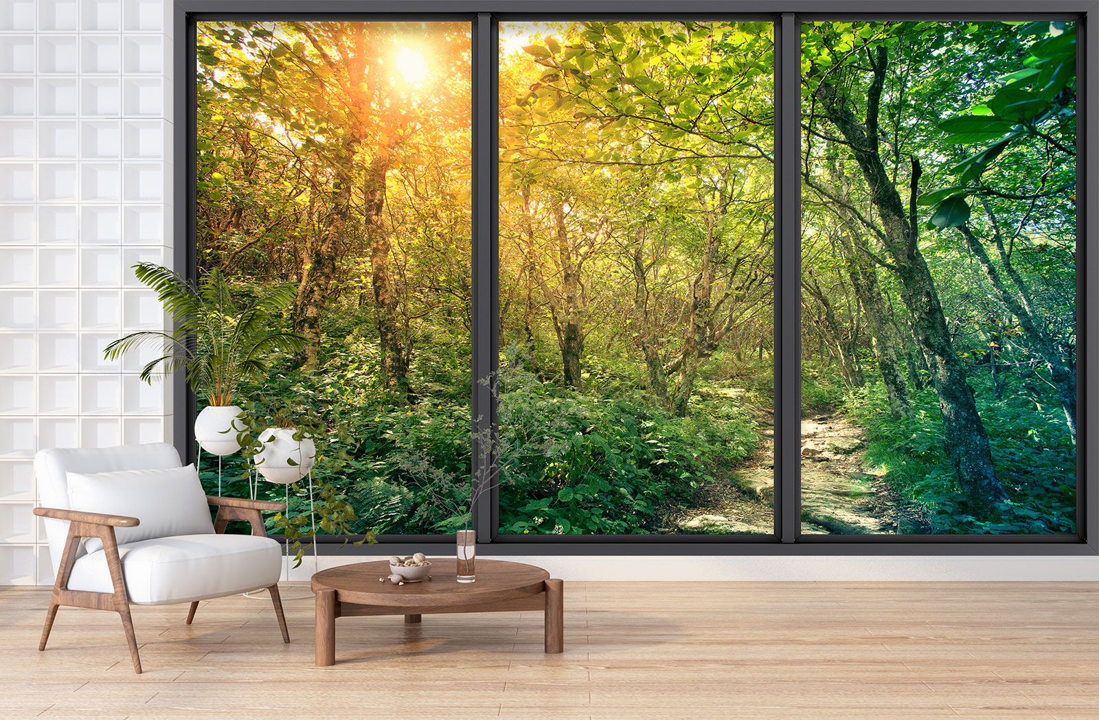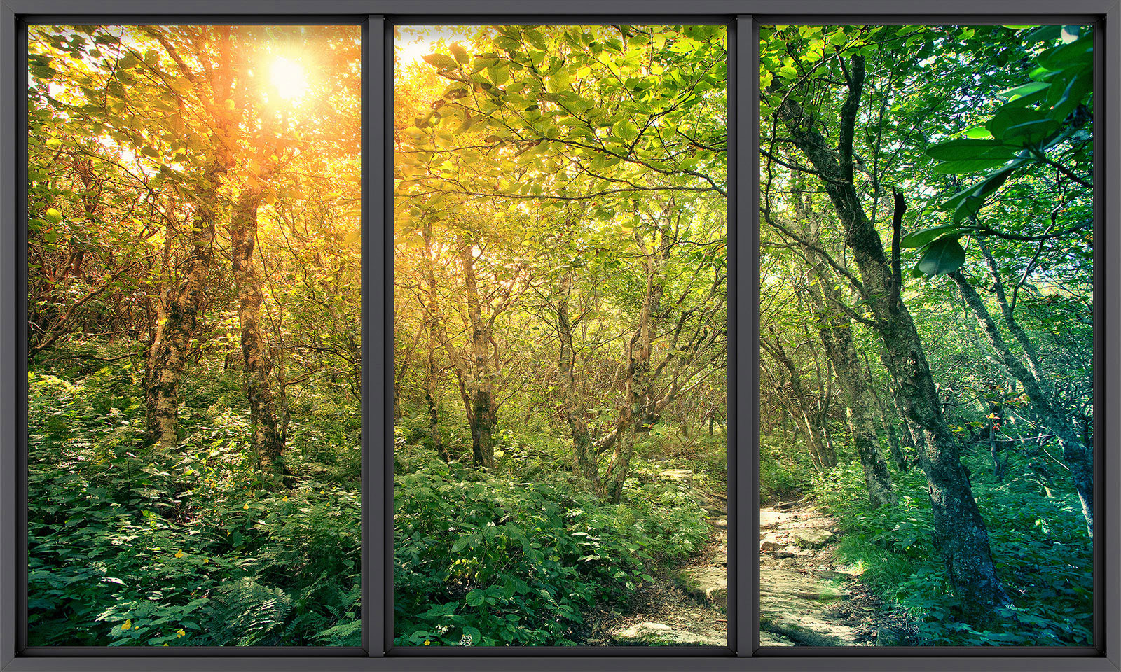 www.lumalea.es > Papeles Pintados > > > Papeles Pintados Trampantojo 3D > Ventanas Panorámicas Trampantojo 3D > Papel pintado panorámico trampantojo - Camino bosque