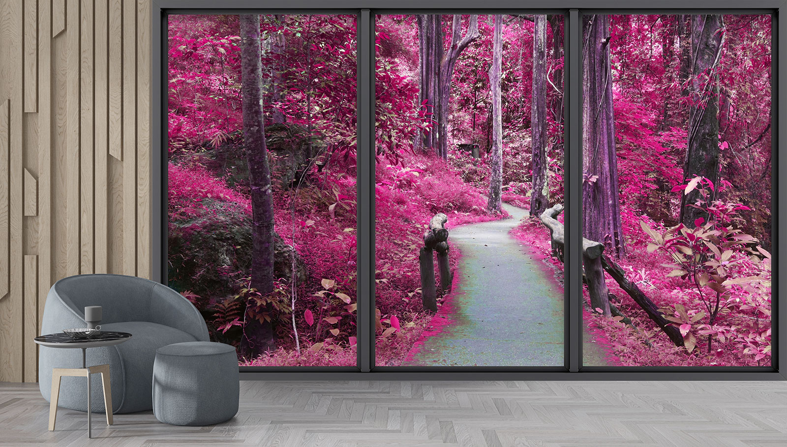 www.lumalea.es > Papeles Pintados > > > Papeles Pintados Trampantojo 3D > Ventanas Panorámicas Trampantojo 3D > Papel pintado panorámico trampantojo - Camino bosque