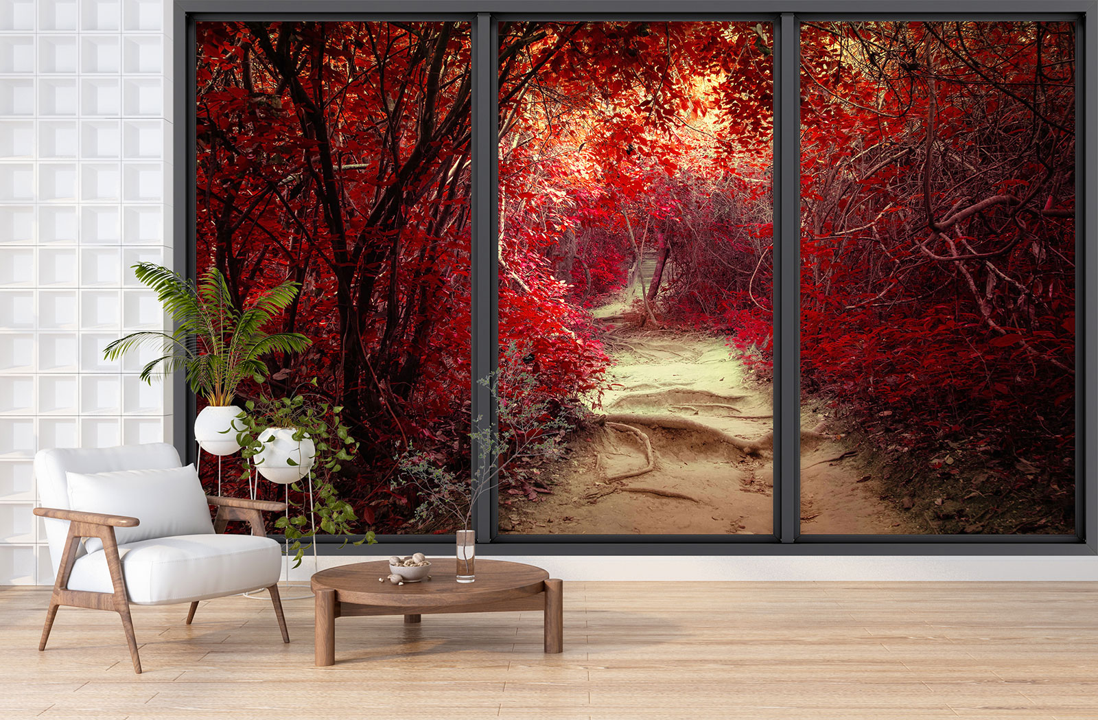 www.lumalea.es > Papeles Pintados > > > Papeles Pintados Trampantojo 3D > Ventanas Panorámicas Trampantojo 3D > Papel pintado panorámico trampantojo - Camino bosque