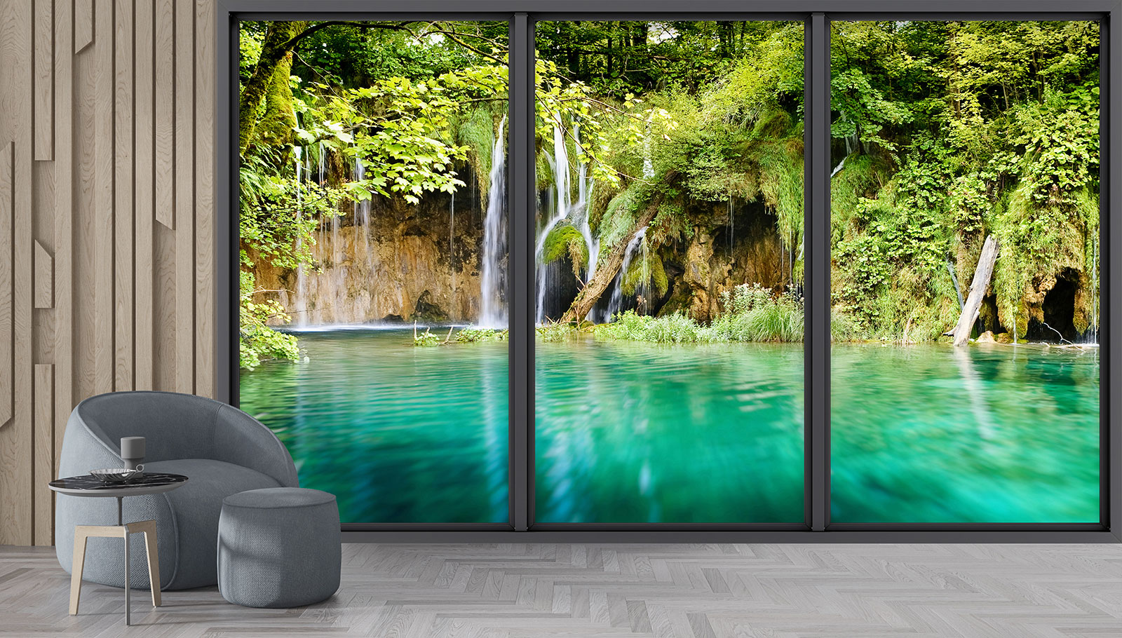www.lumalea.es > Papeles Pintados > > > Papeles Pintados Trampantojo 3D > Ventanas Panorámicas Trampantojo 3D > Papel pintado panorámico trampantojo - Cascadas