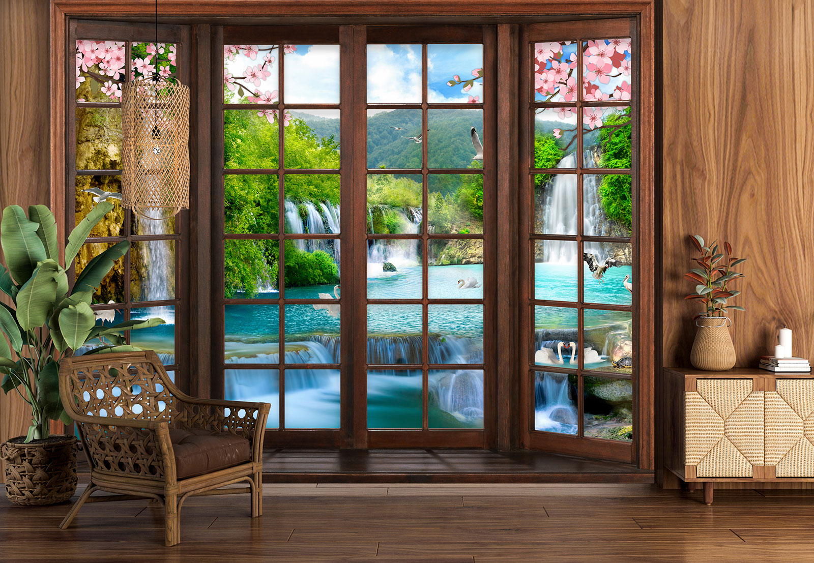 Papel pintado panorámico trampantojo - Cascadas
