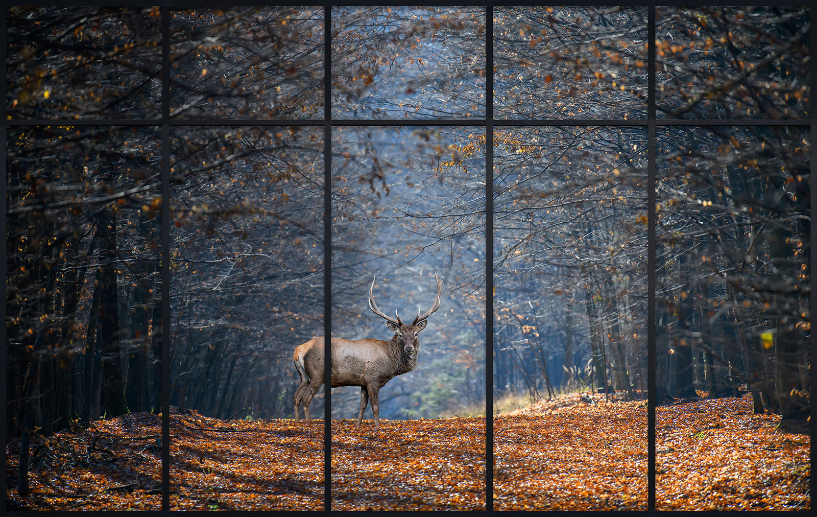Papel pintado panorámico trampantojo - Ciervo camino en el bosque