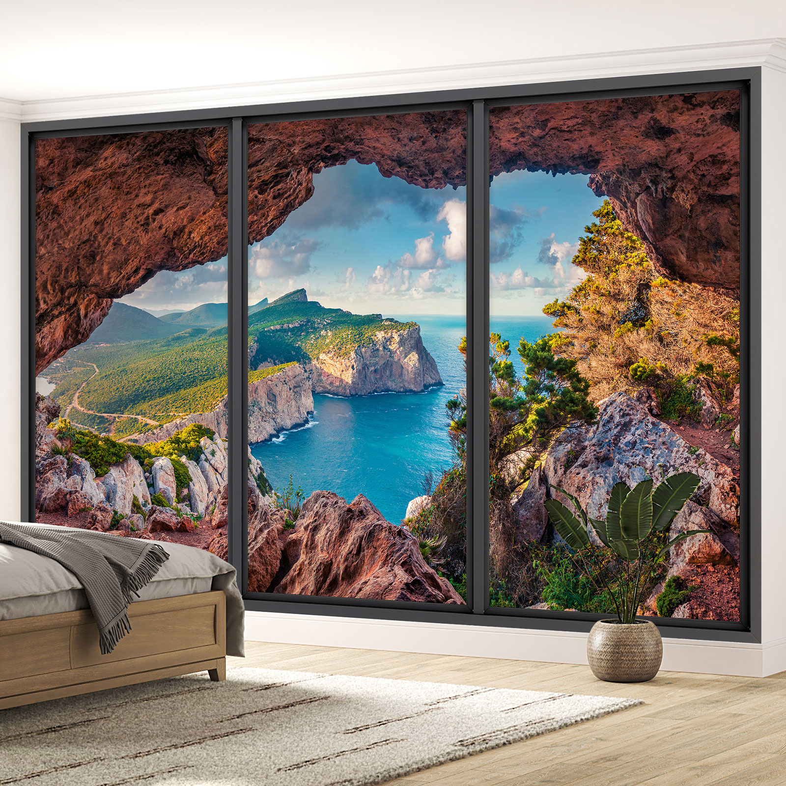www.lumalea.es > Papeles Pintados > > > Papeles Pintados Trampantojo 3D > Ventanas Panorámicas Trampantojo 3D > Papel pintado panorámico trampantojo - Cueva con vista al mar