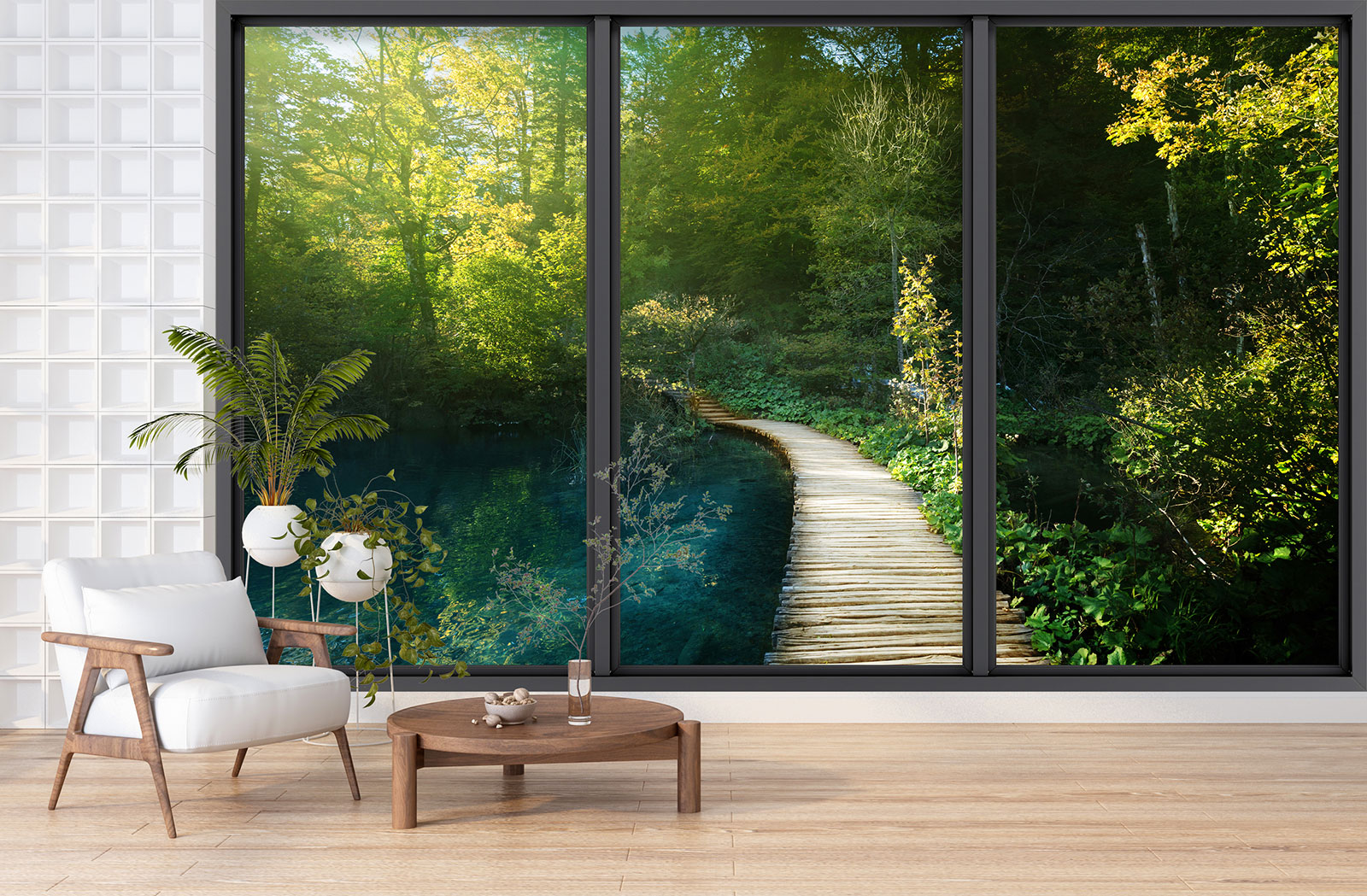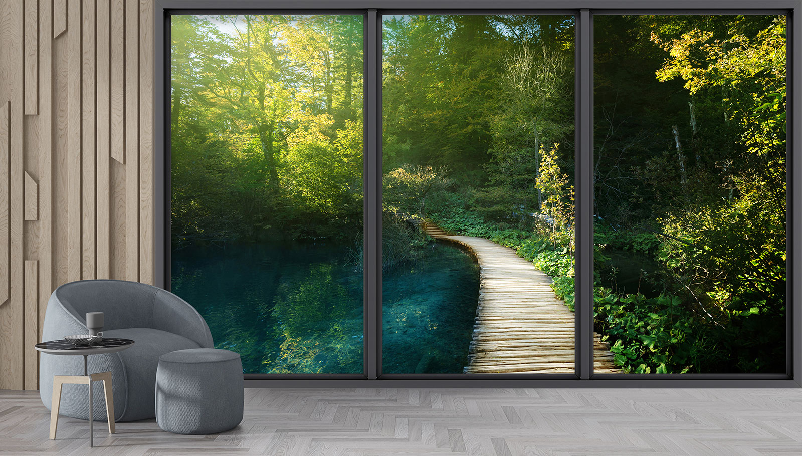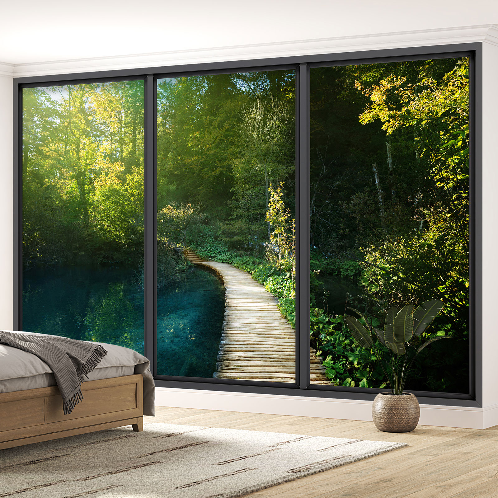 Papel pintado panorámico trampantojo - Embarcadero bosque