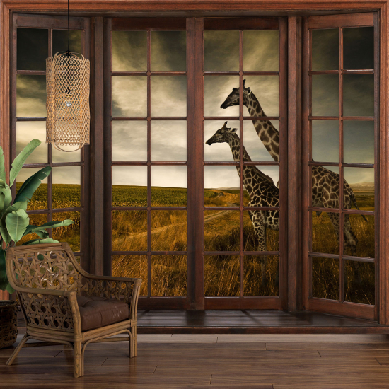 Papel pintado panorámico trampantojo - Jirafas