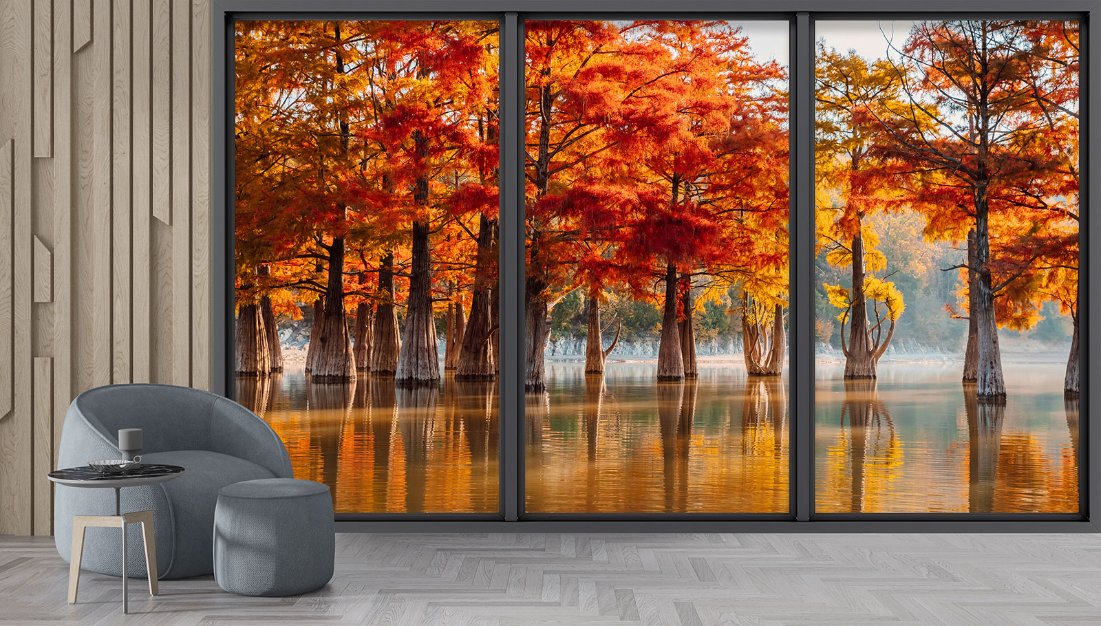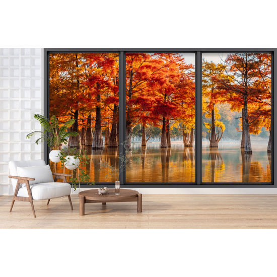 www.lumalea.es > Papeles Pintados > > > Papeles Pintados Trampantojo 3D > Ventanas Panorámicas Trampantojo 3D > Papel pintado panorámico trampantojo - Lago y árboles