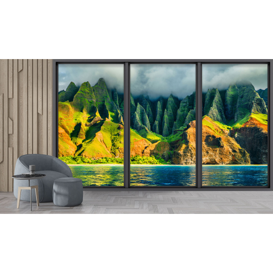 Papel pintado panorámico trampantojo - Mar y montañas