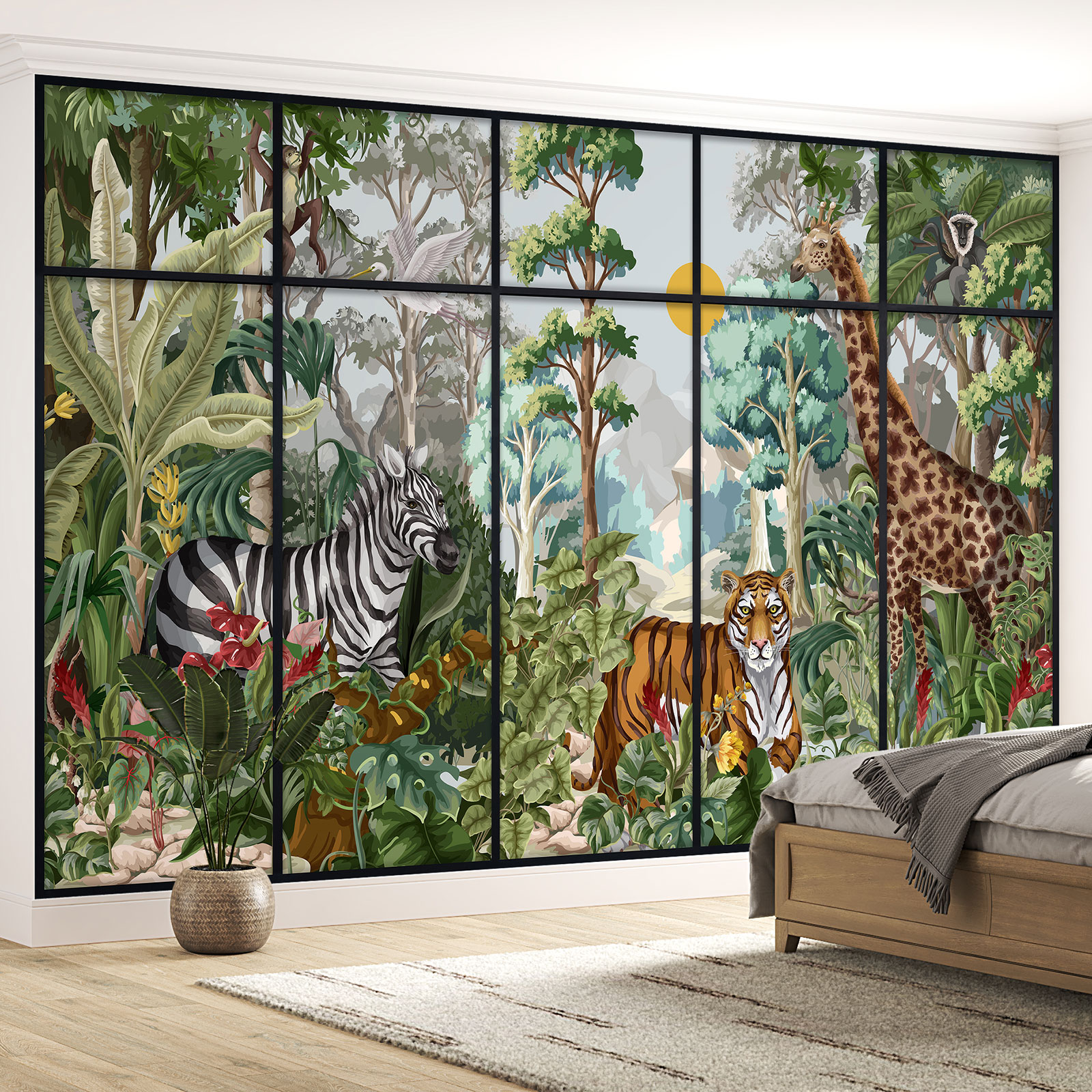 Papel pintado panorámico trampantojo para niños - Infantil - Animales de la jungla