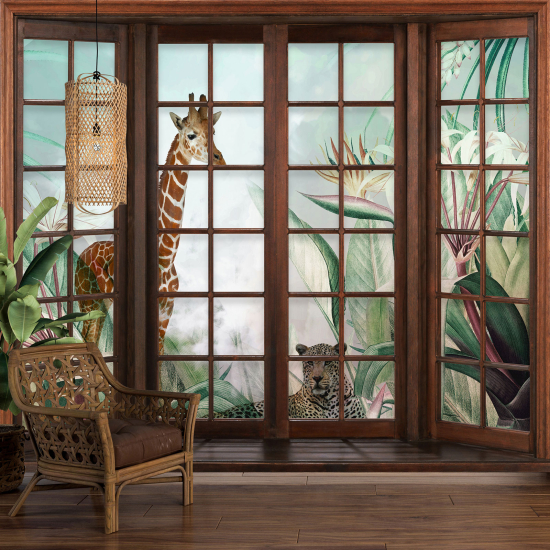Papel pintado panorámico trampantojo para niños - Infantil - Animales de la Selva