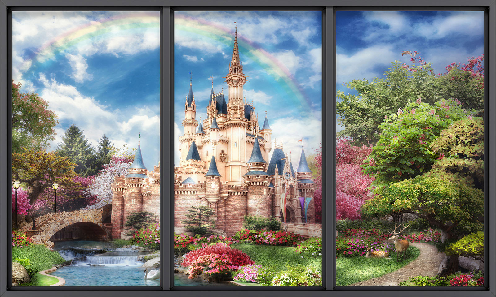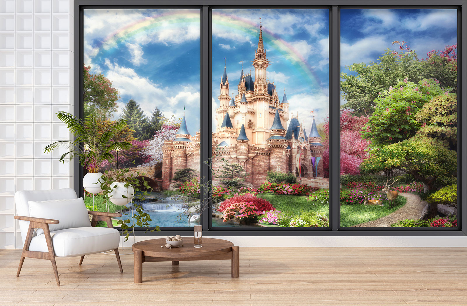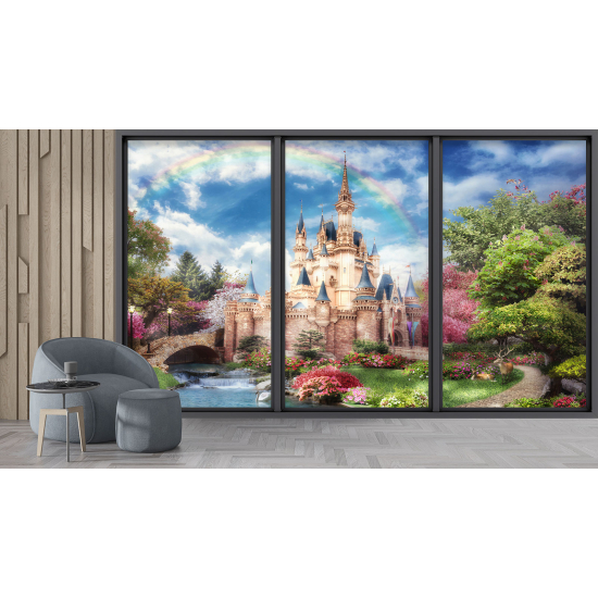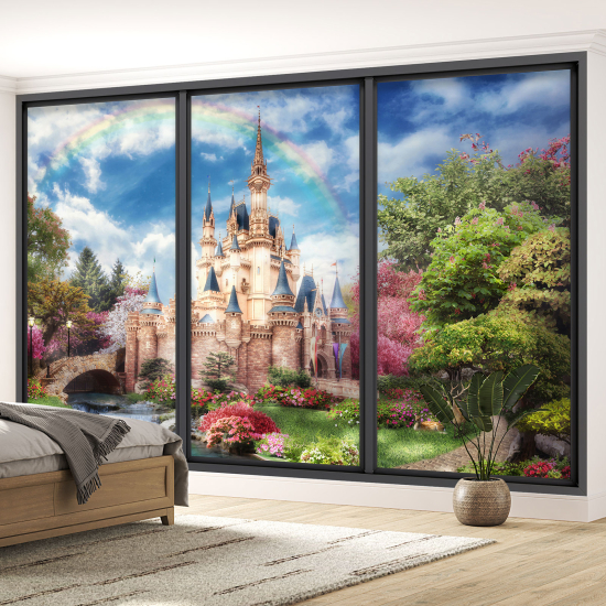 Papel pintado panorámico trampantojo para niños - Infantil - Castillo arcoÃris