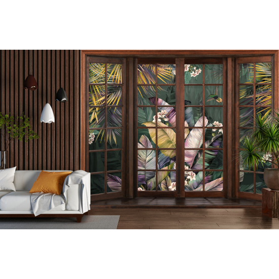 www.lumalea.es > Papeles Pintados > > > Papeles Pintados Trampantojo 3D > Ventanas Trampantojo 3D > Papel pintado panorámico trampantojo - Plantas tropicales