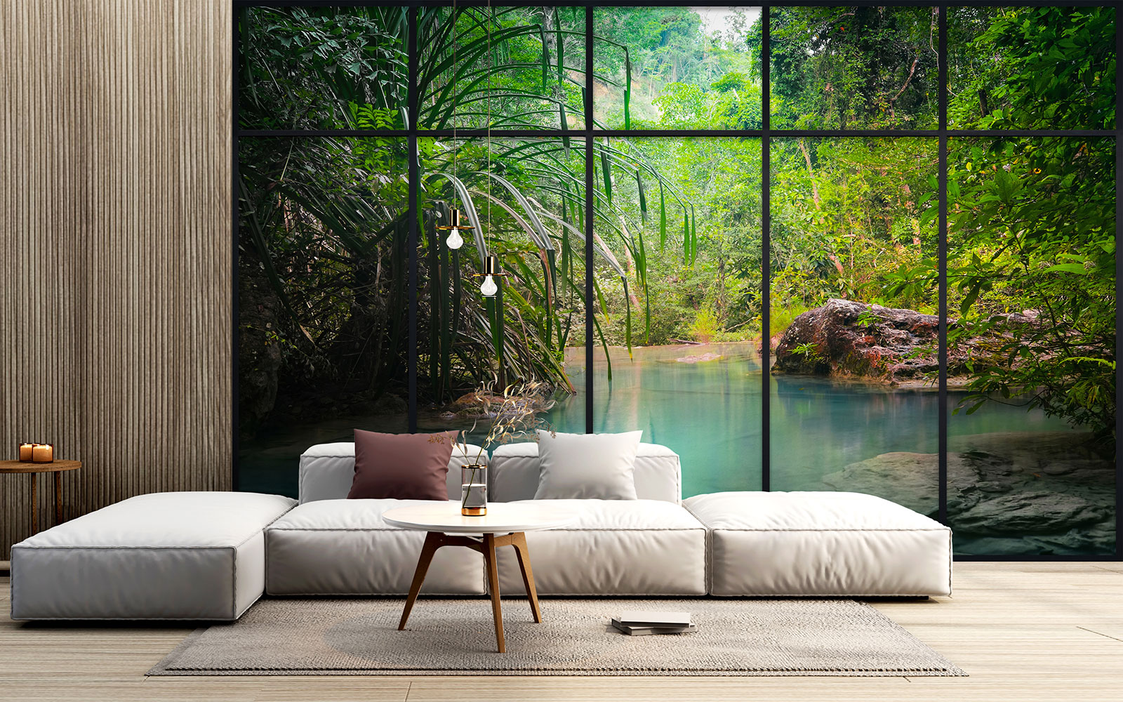 www.lumalea.es > Papeles Pintados > > > Papeles Pintados Trampantojo 3D > Ventanales Trampantojo 3D > Papel pintado panorámico trampantojo - Río paradisíaco