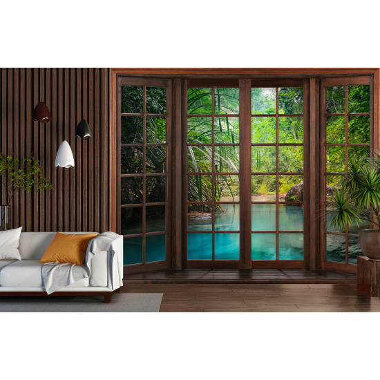 www.lumalea.es > Papeles Pintados > > > Papeles Pintados Trampantojo 3D > Ventanas Trampantojo 3D > Papel pintado panorámico trampantojo - Río paradisíaco