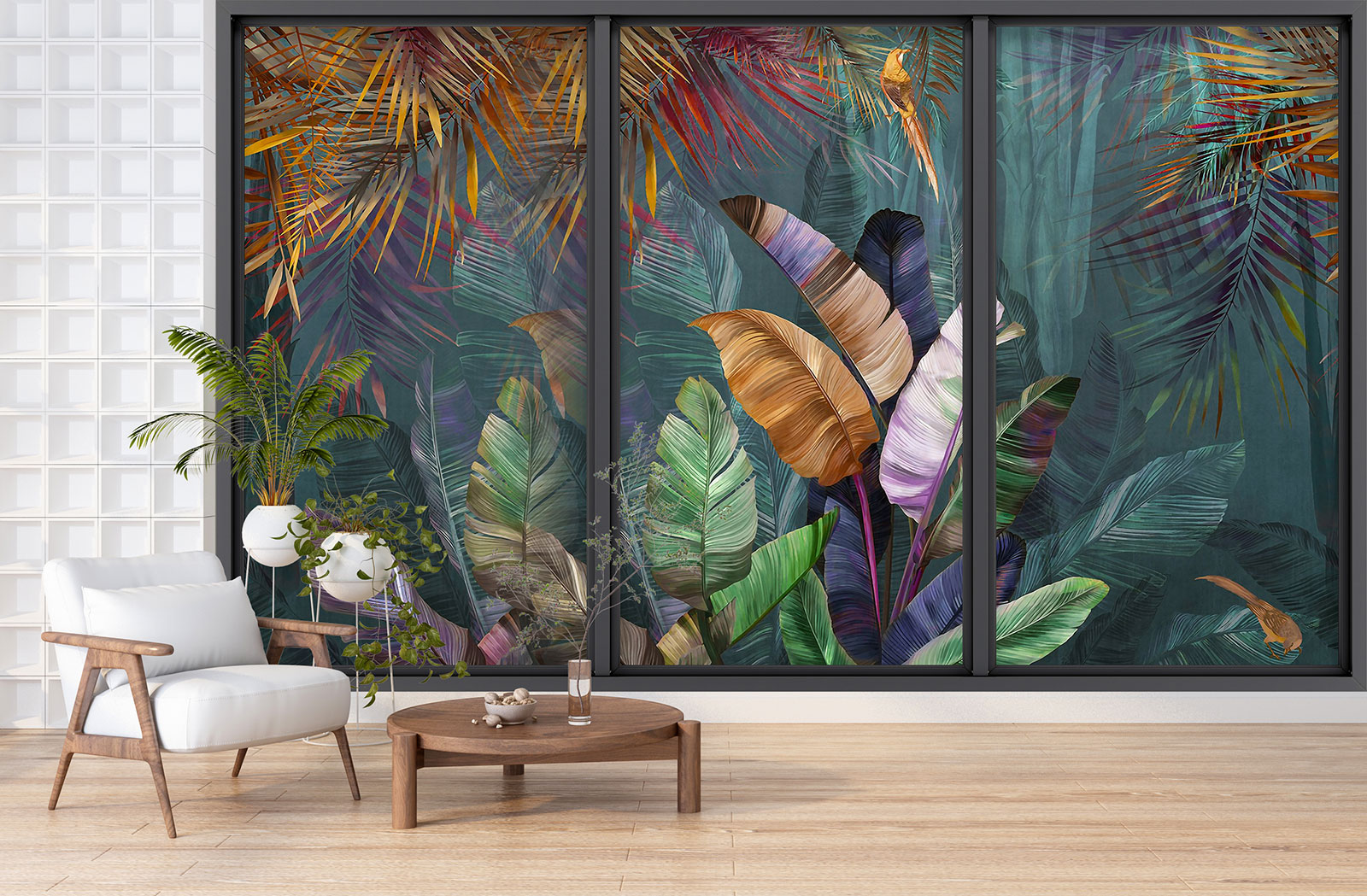 www.lumalea.es > Papeles Pintados > > > Papeles Pintados Trampantojo 3D > Ventanas Panorámicas Trampantojo 3D > Papel pintado panorámico trampantojo - Selva tropical
