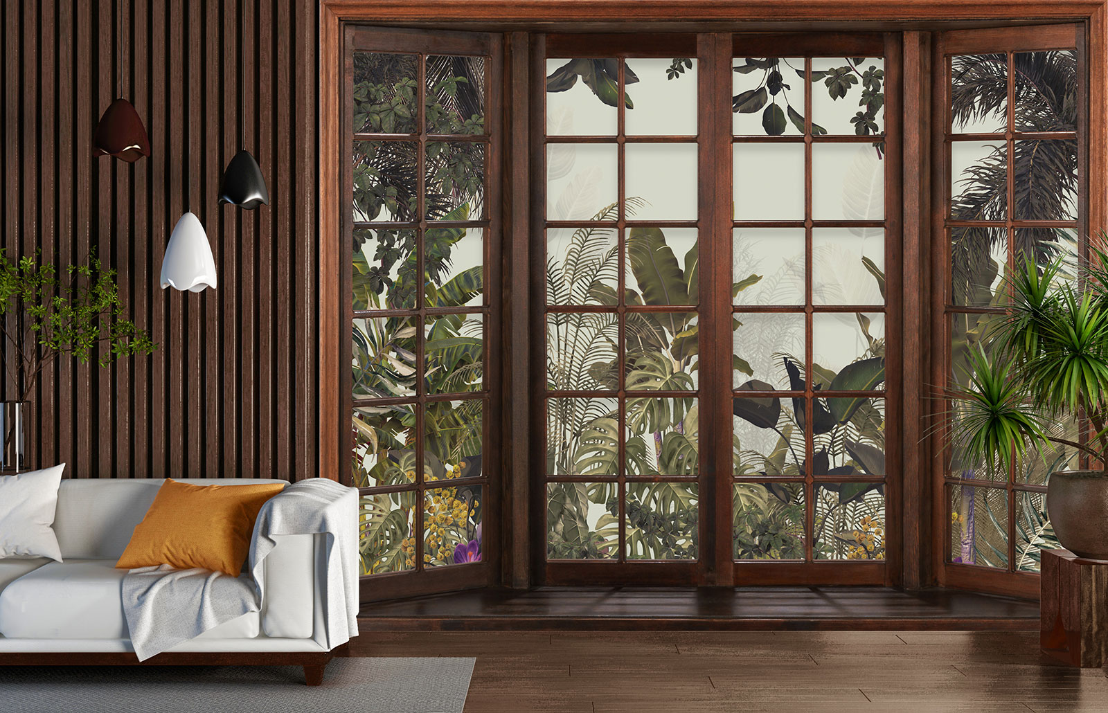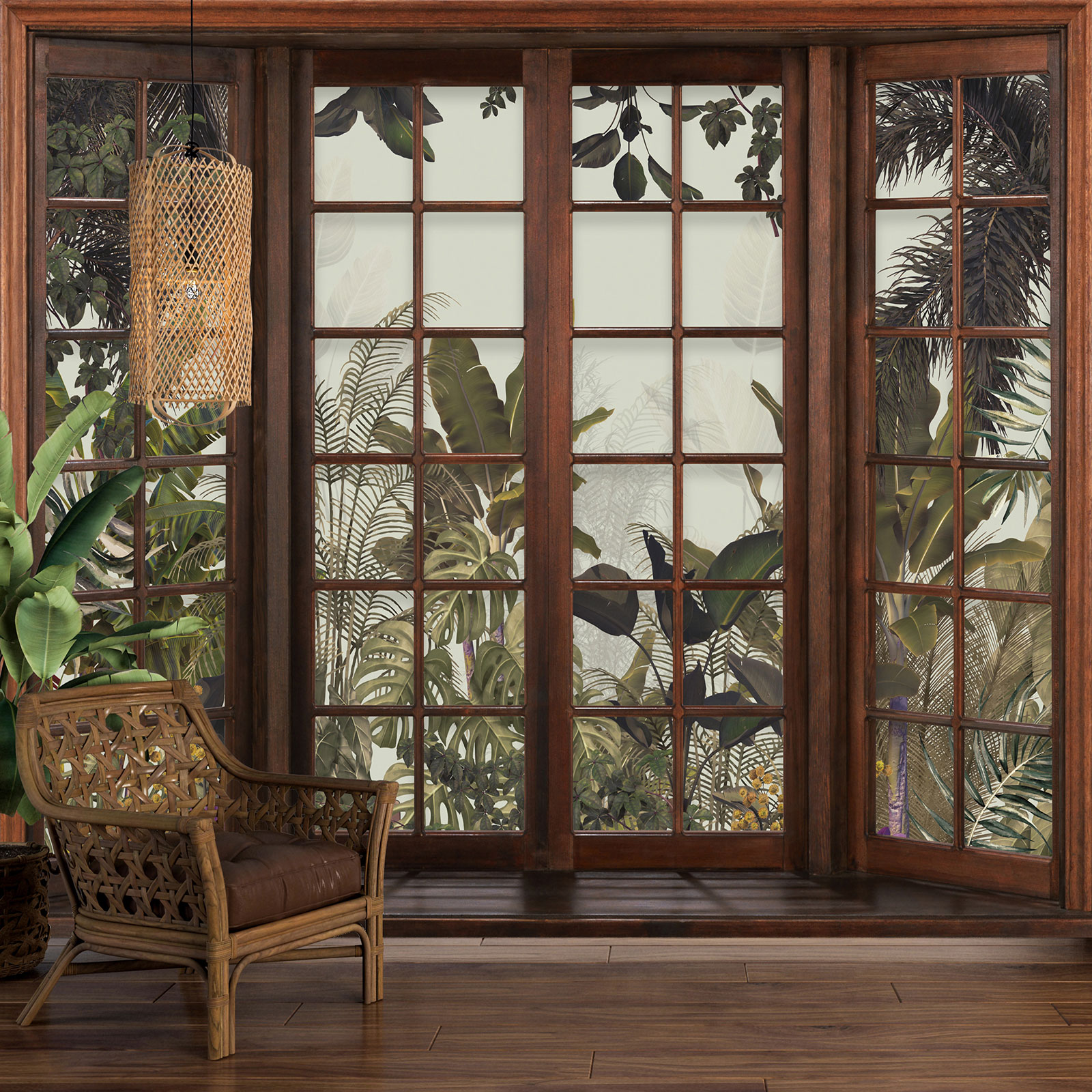 www.lumalea.es > Papeles Pintados > > > Papeles Pintados Trampantojo 3D > Ventanas Trampantojo 3D > Papel pintado panorámico trampantojo - Selva Tropical