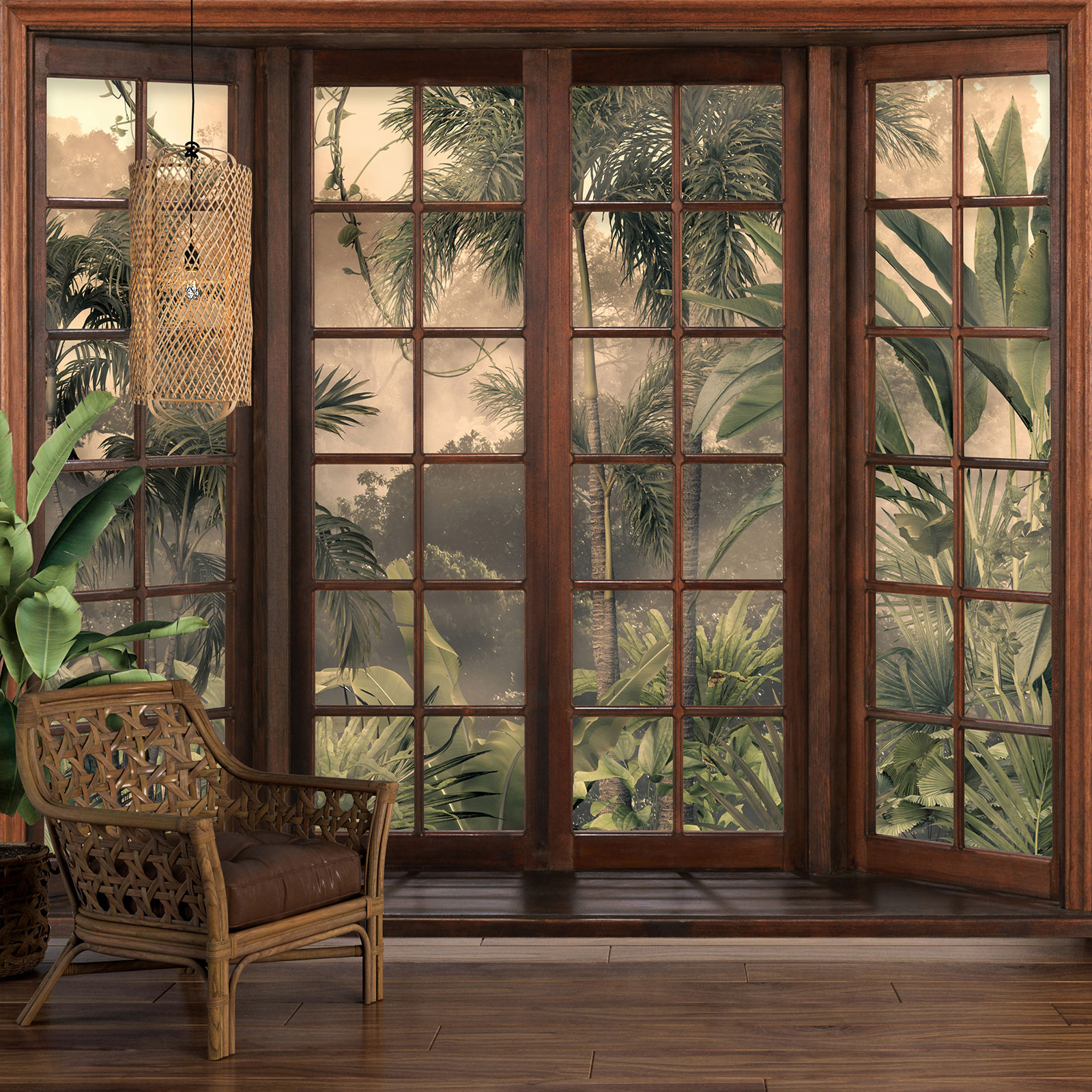 www.lumalea.es > Papeles Pintados > > > Papeles Pintados Trampantojo 3D > Ventanas Trampantojo 3D > Papel pintado panorámico trampantojo - Selva Tropical