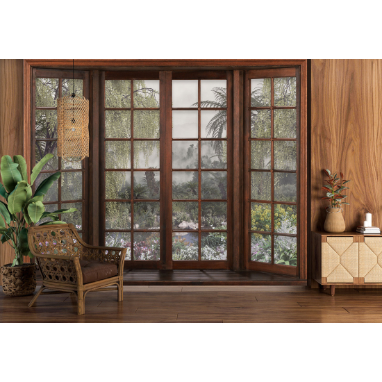 www.lumalea.es > Papeles Pintados > > > Papeles Pintados Trampantojo 3D > Ventanas Trampantojo 3D > Papel pintado panorámico trampantojo - Selva Tropical