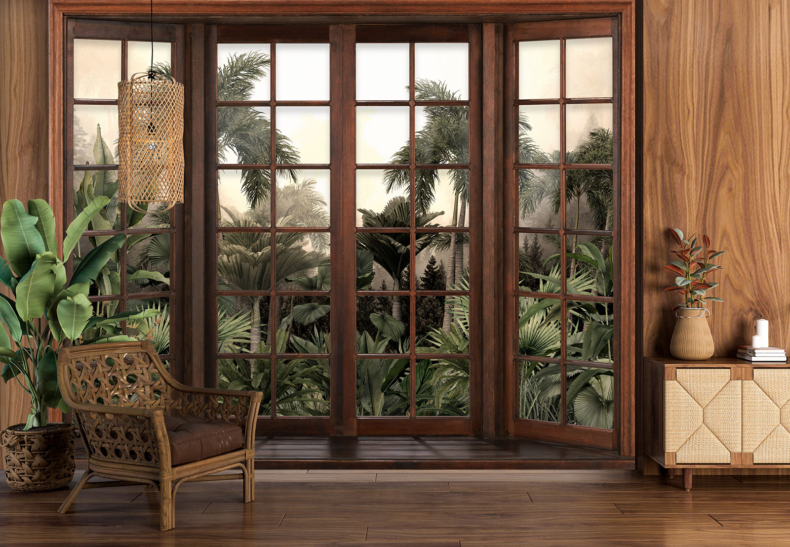 www.lumalea.es > Papeles Pintados > > > Papeles Pintados Trampantojo 3D > Ventanas Trampantojo 3D > Papel pintado panorámico trampantojo - Selva Tropical