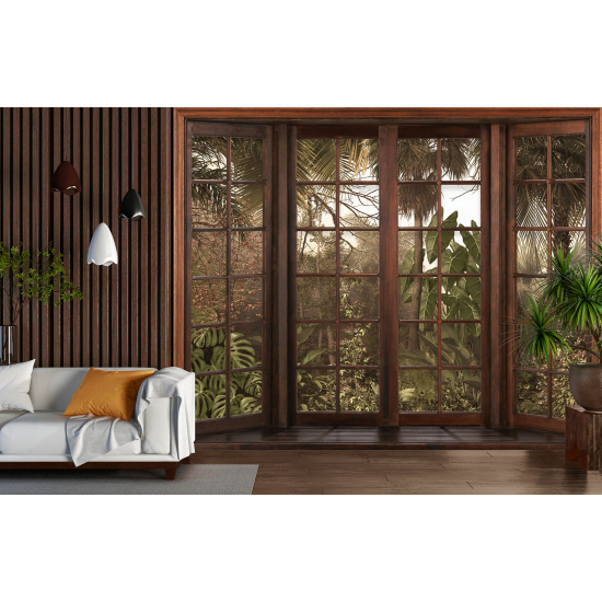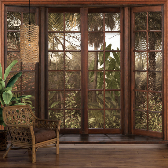 www.lumalea.es > Papeles Pintados > > > Papeles Pintados Trampantojo 3D > Ventanas Trampantojo 3D > Papel pintado panorámico trampantojo - Selva Tropical