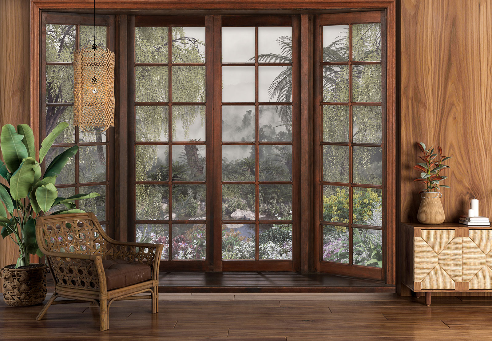 www.lumalea.es > Papeles Pintados > > > Papeles Pintados Trampantojo 3D > Ventanas Trampantojo 3D > Papel pintado panorámico trampantojo - Selva Tropical