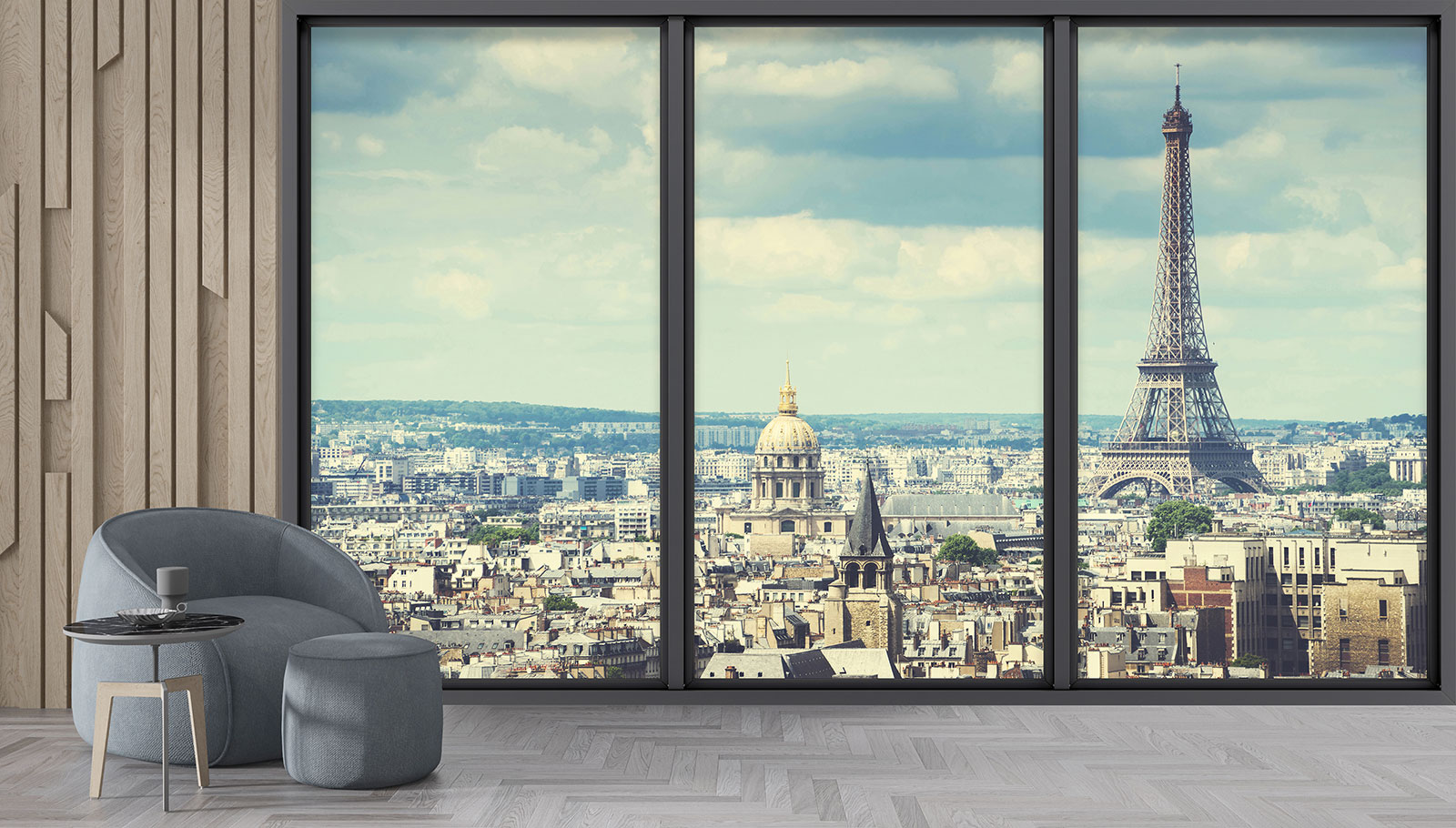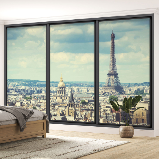 www.lumalea.es > Papeles Pintados > > > Papeles Pintados Trampantojo 3D > Ventanas Panorámicas Trampantojo 3D > Papel pintado panorámico trampantojo - Torre Eiffel de París