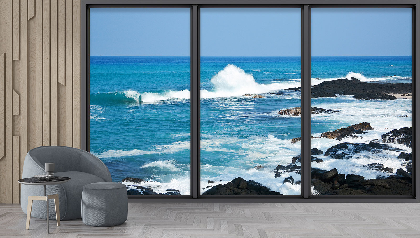 www.lumalea.es > Papeles Pintados > > > Papeles Pintados Trampantojo 3D > Ventanas Panorámicas Trampantojo 3D > Papel pintado panorámico trampantojo - Vista al mar