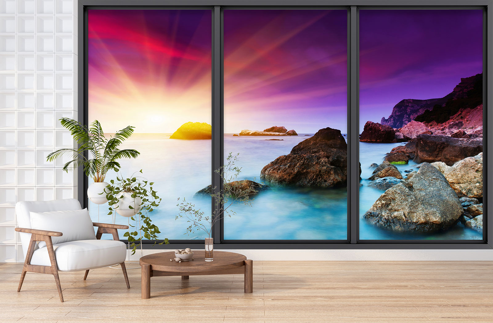 www.lumalea.es > Papeles Pintados > > > Papeles Pintados Trampantojo 3D > Ventanas Panorámicas Trampantojo 3D > Papel pintado panorámico trampantojo - Vista al mar