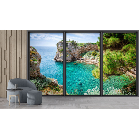 www.lumalea.es > Papeles Pintados > > > Papeles Pintados Trampantojo 3D > Ventanas Panorámicas Trampantojo 3D > Papel pintado panorámico trampantojo - Vista al mar