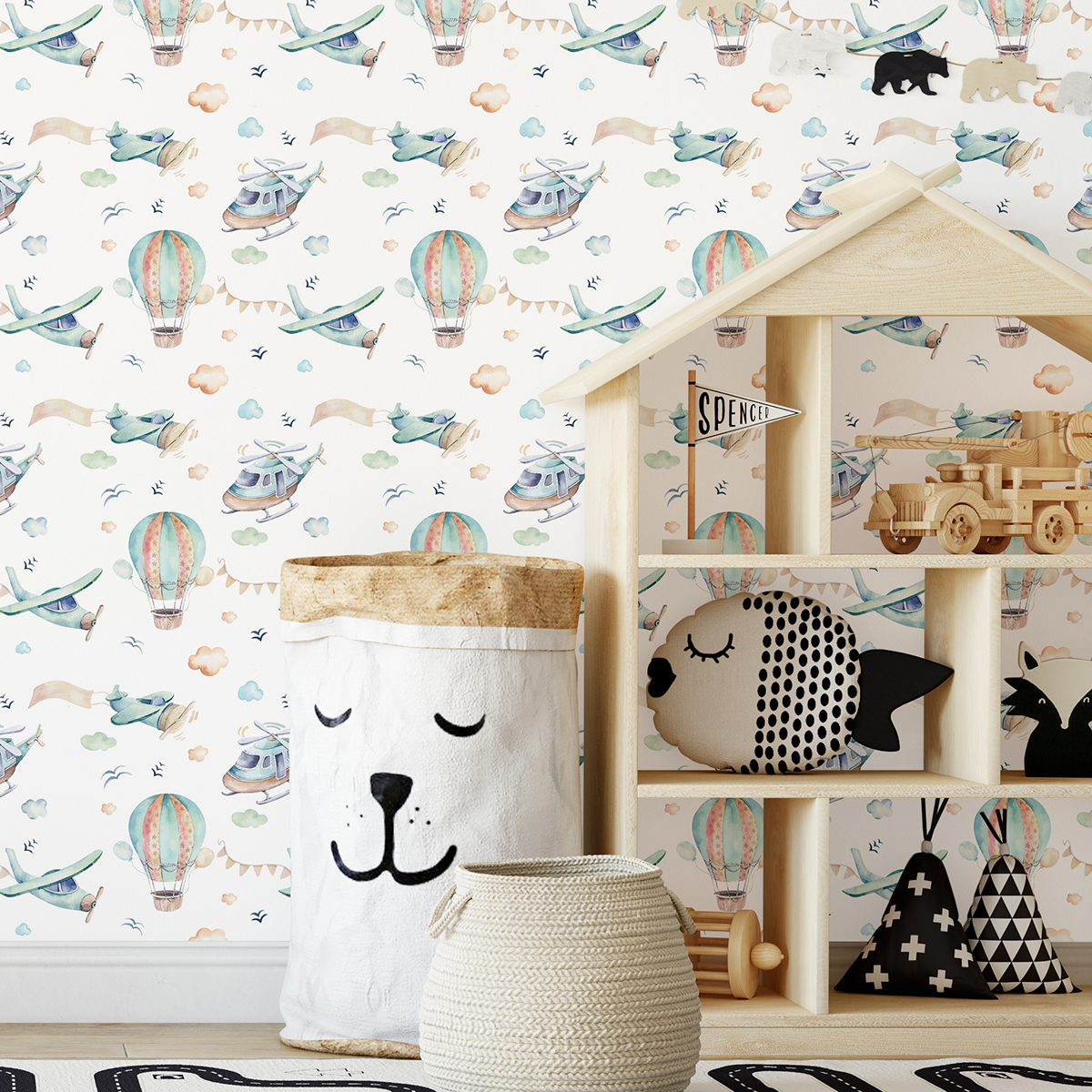 www.lumalea.es > Papeles Pintados > > > Infantiles - Motivos de Tamaño Estándar > Papel pintado para niños - infantil - Aviones Globos Aerostáticos