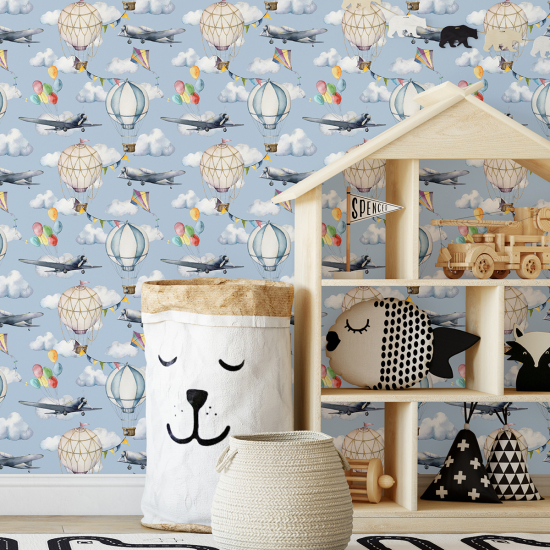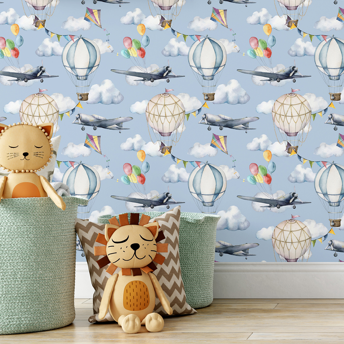 www.lumalea.es > Papeles Pintados > > > Infantiles - Motivos de Tamaño Estándar > Papel pintado para niños - infantil - Aviones Globos Aerostáticos