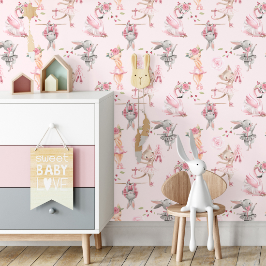 Papel pintado para niños - infantil - Bailarinas Flamencas Rosas