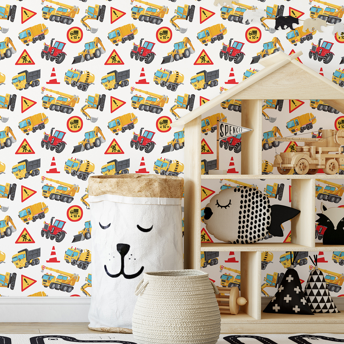 Papel pintado para niños - infantil - Camiones Obras