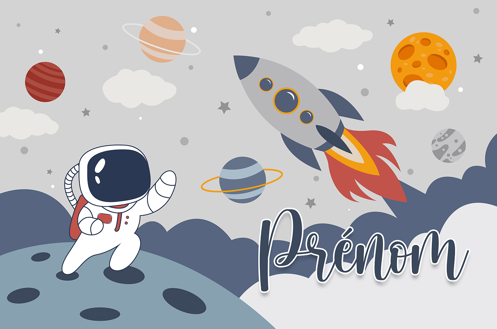 Papel pintado para niños - infantil panorámico con nombre personalizado - Espacio