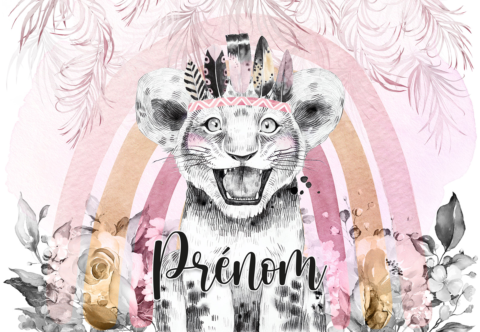 Papel pintado para niños - infantil panorámico con nombre personalizado - León Indio