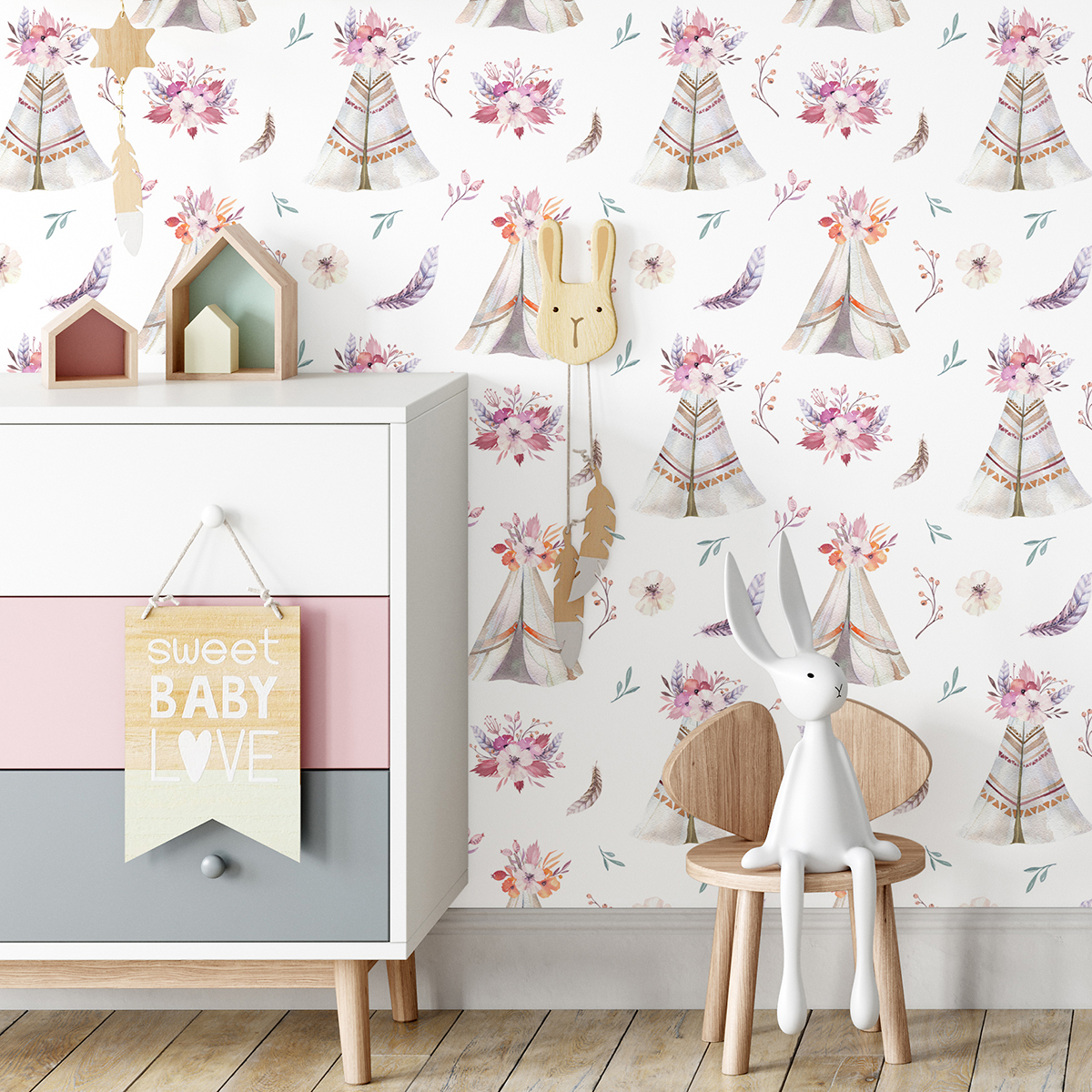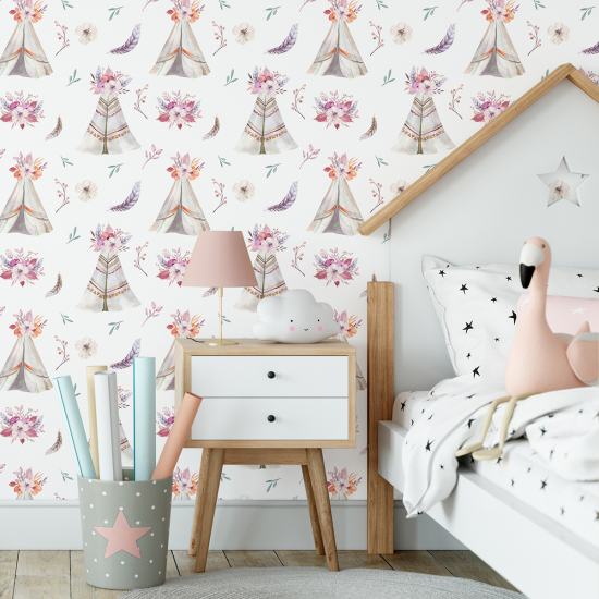 Papel pintado para niños - infantil - Plumas Tipis