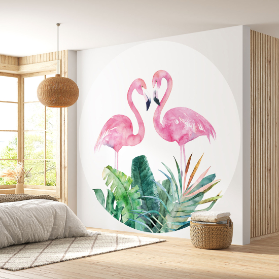 Papel pintado redondo - Flamencos Rosados