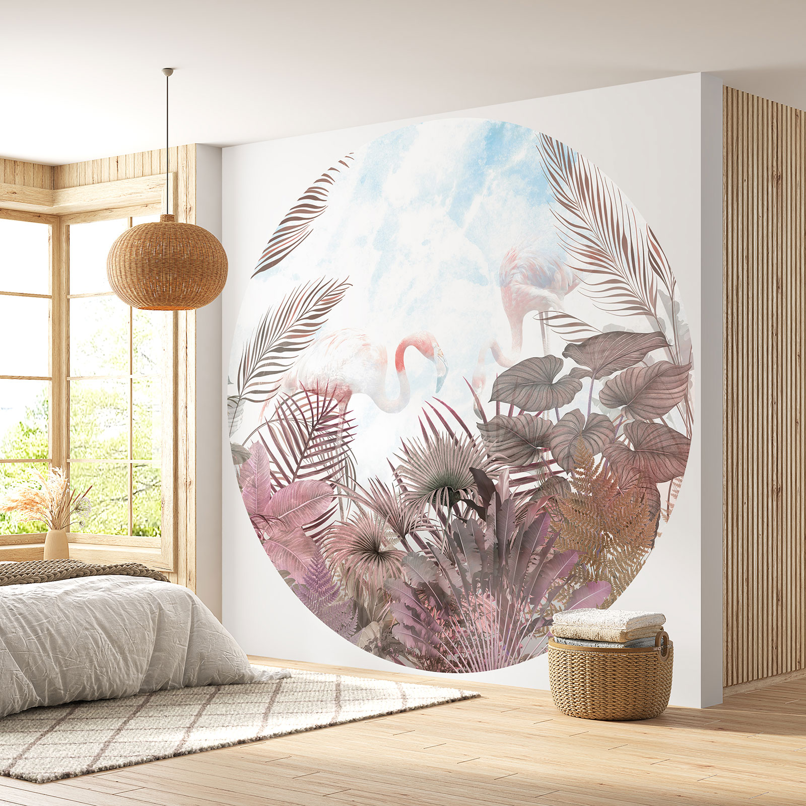 Papel pintado redondo - Flamencos Rosados