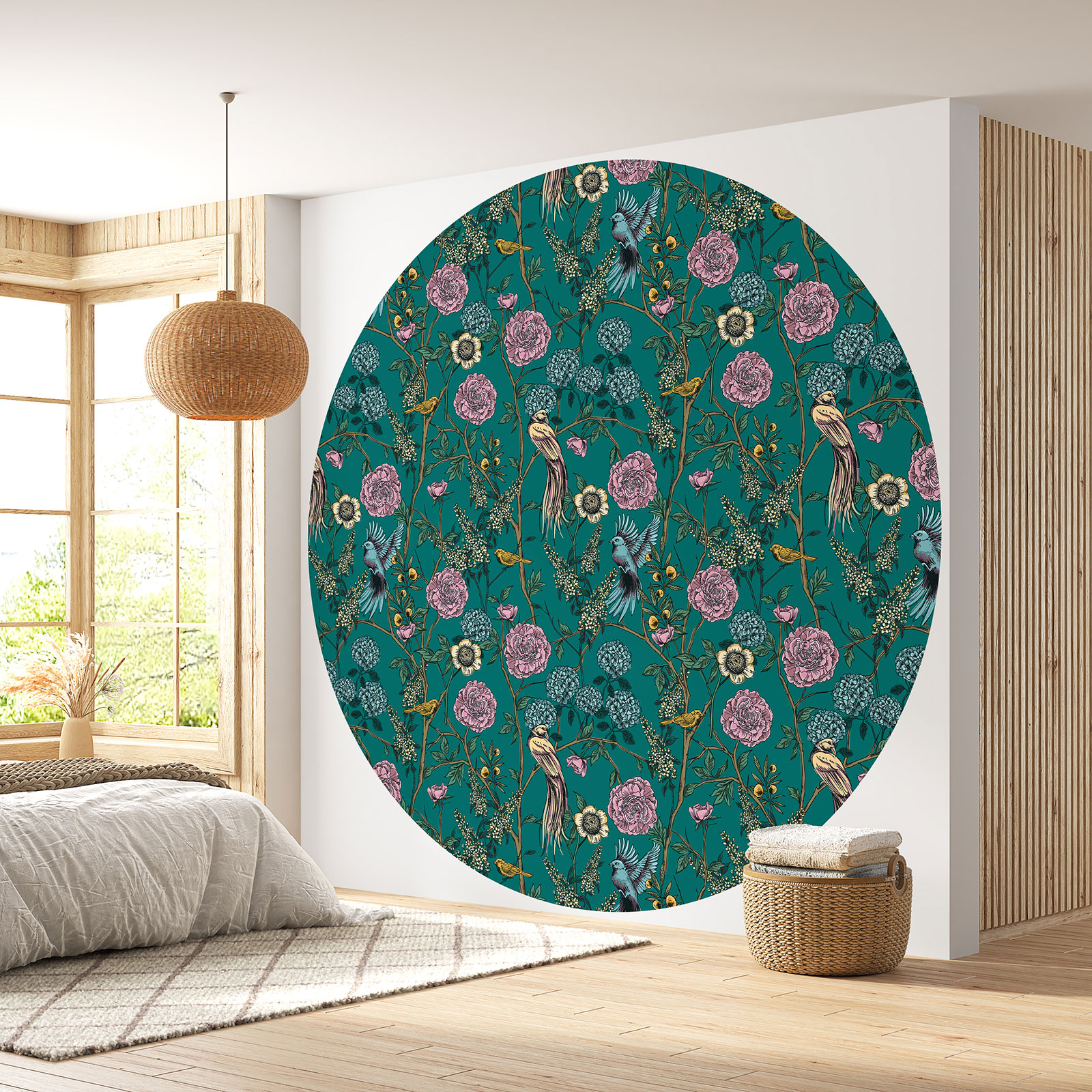 Papel pintado redondo - Flores Pájaros