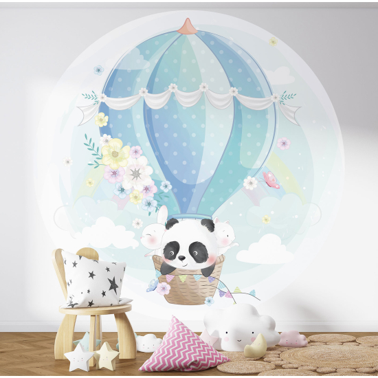 Papel pintado redondo para niños - Infantil - Panda Globo Aerostático