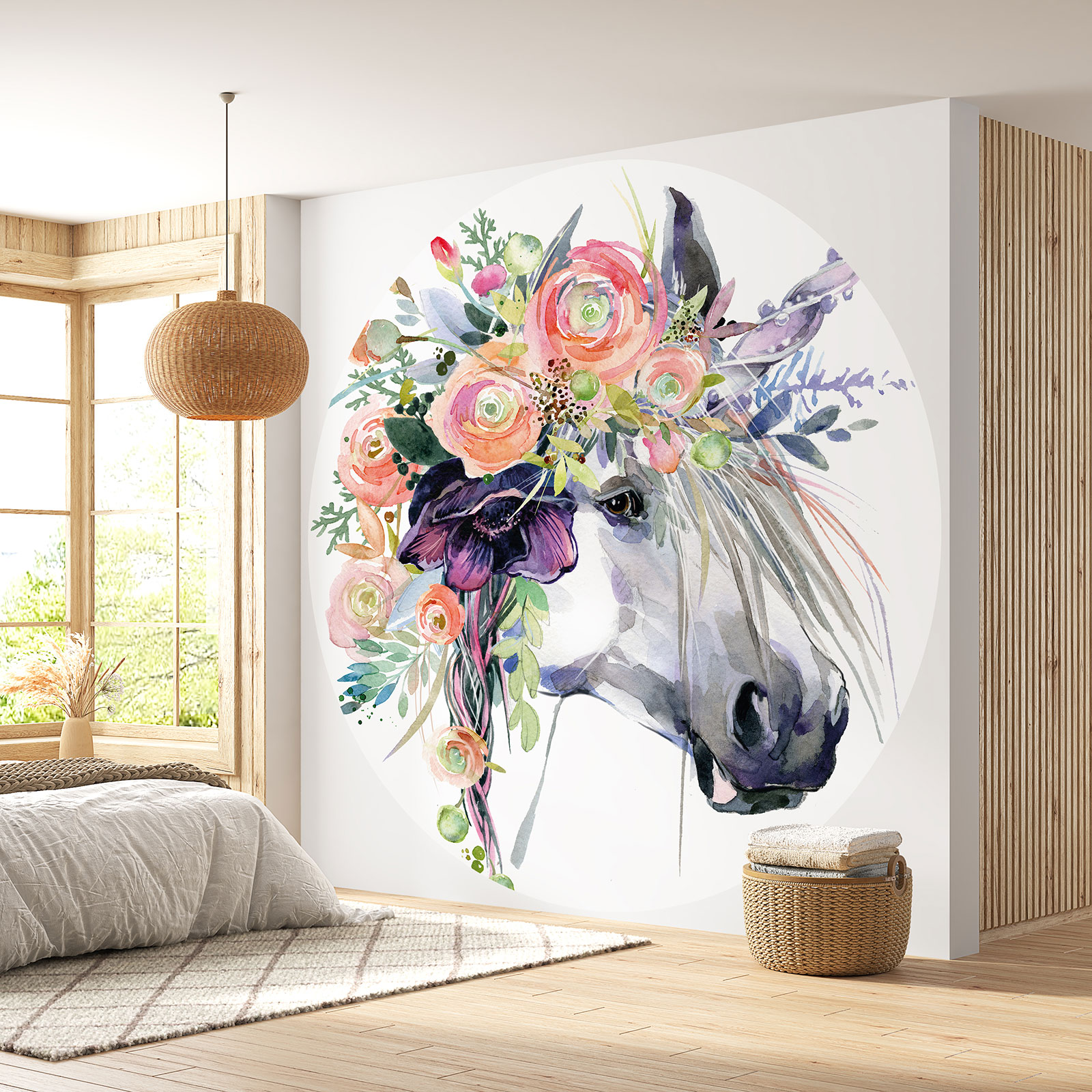 Papel pintado redondo para niños - Infantil - Unicornio Flores