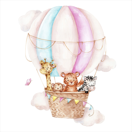 Póster para niños - Infantil - Globo aerostático Animales
