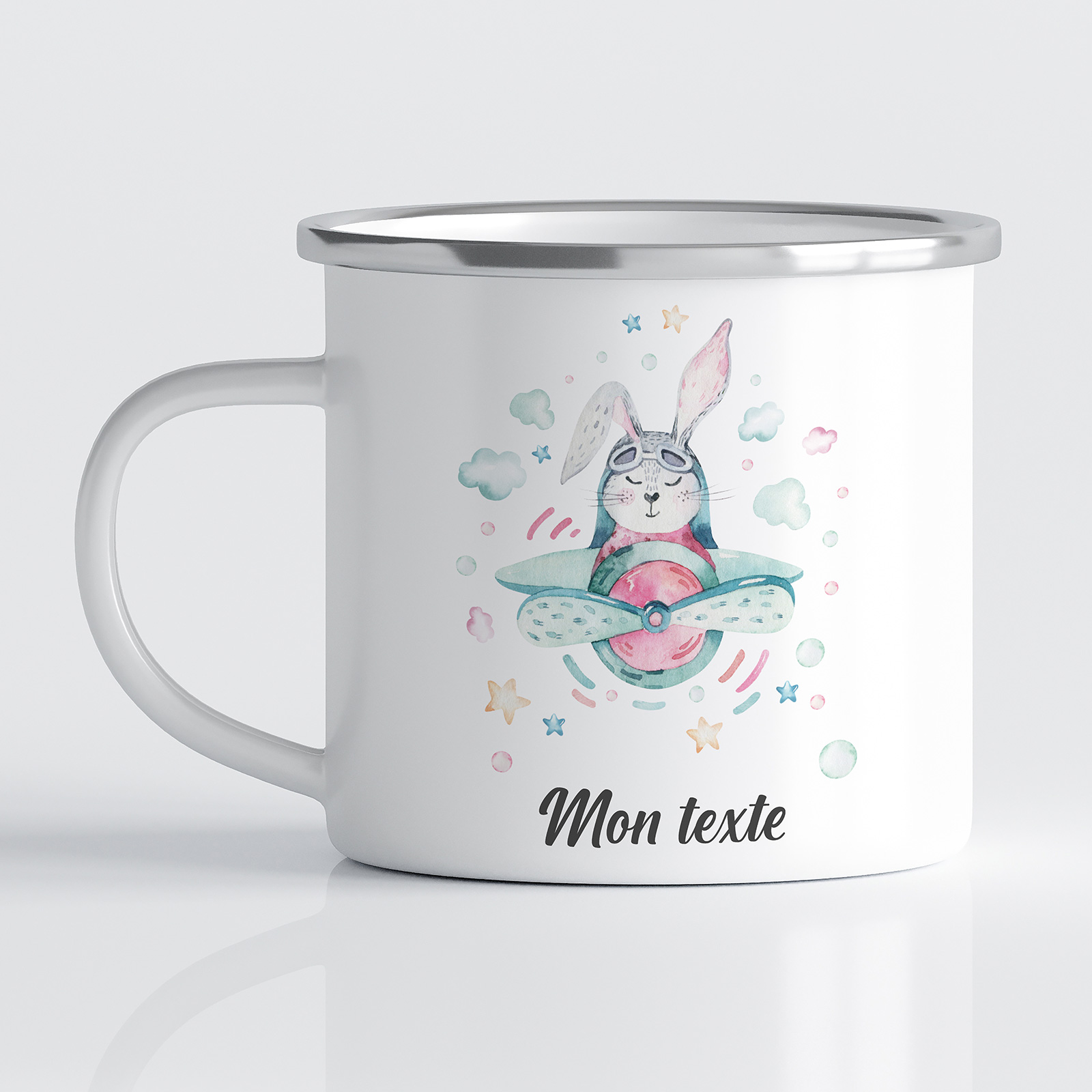 Taza esmaltada personalizada para niños - Infantil - Conejo avión