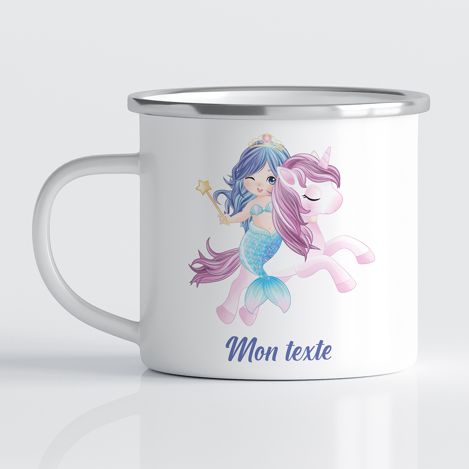 Taza esmaltada personalizada para niños - Infantil - Sirena Unicornio