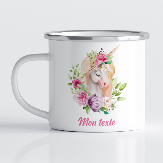 Taza esmaltada personalizada para niños - Infantil - Unicornio flores