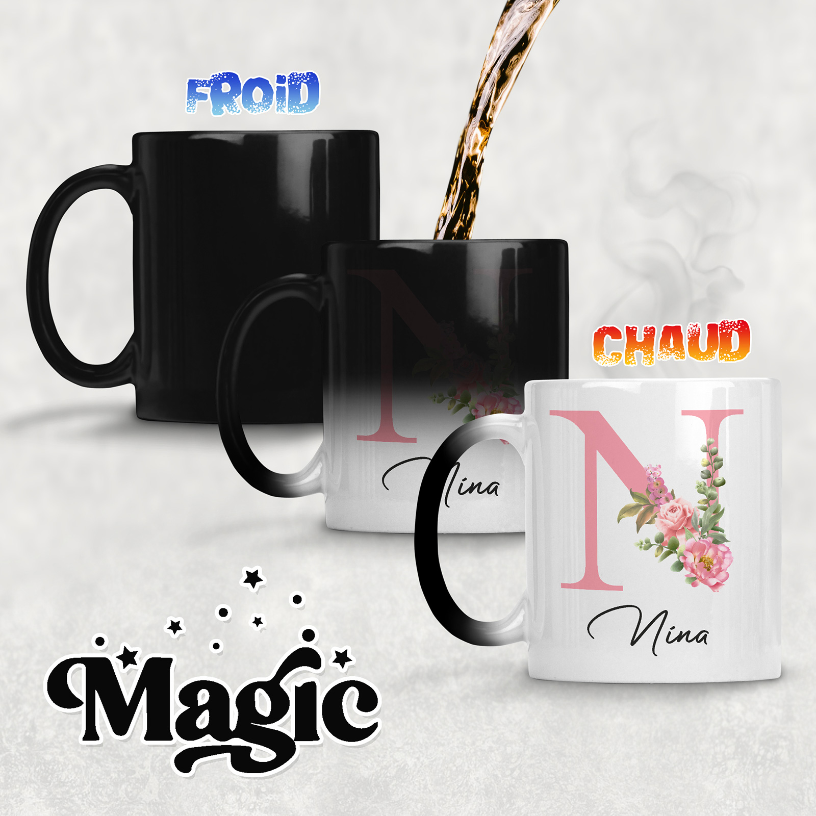 Nuestro Mug Mágico es mucho más que un simple recipiente. Es una obra de arte que se revela cuando viertes tu café, té u otra bebida caliente. Su superficie parece ser inicialmente negra y misteriosa, pero ¡tan pronto como entra en juego el calor, la magia ocurre!