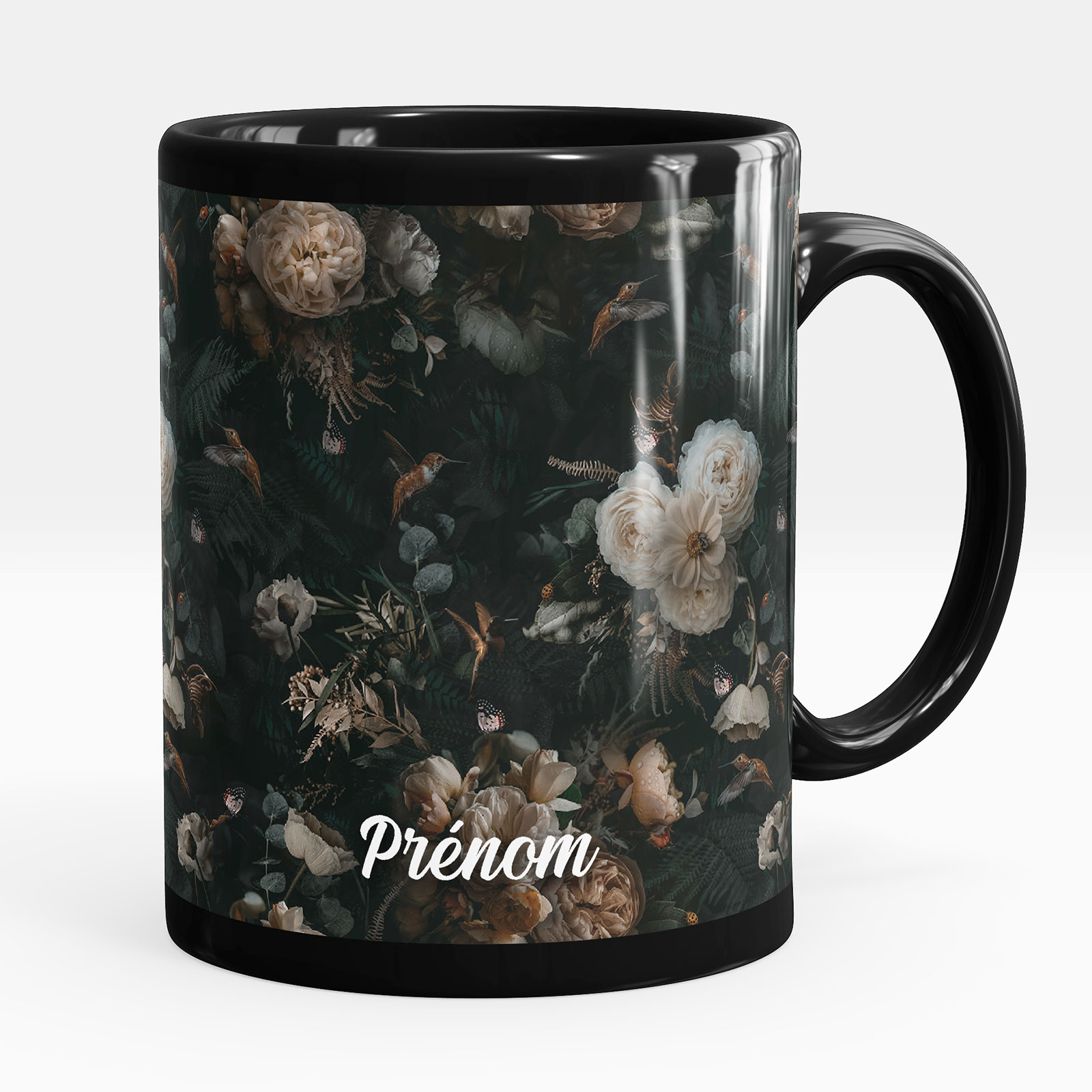 Taza personalizada totalmente negra - Flores