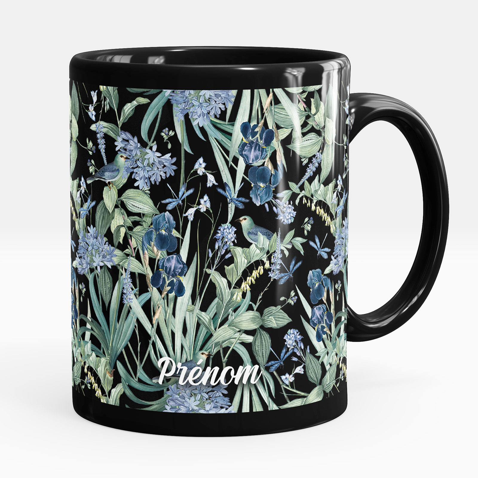 www.lumalea.es > Tazas / Botellas > Tazas Negras Integrales Adultos > Taza personalizada totalmente negra - Flores