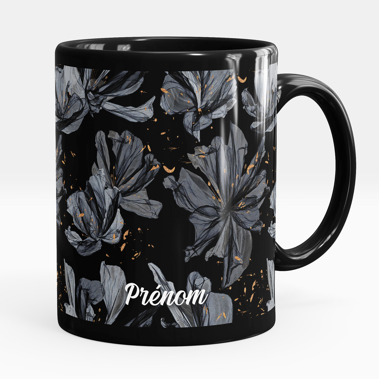 Taza personalizada totalmente negra - Flores