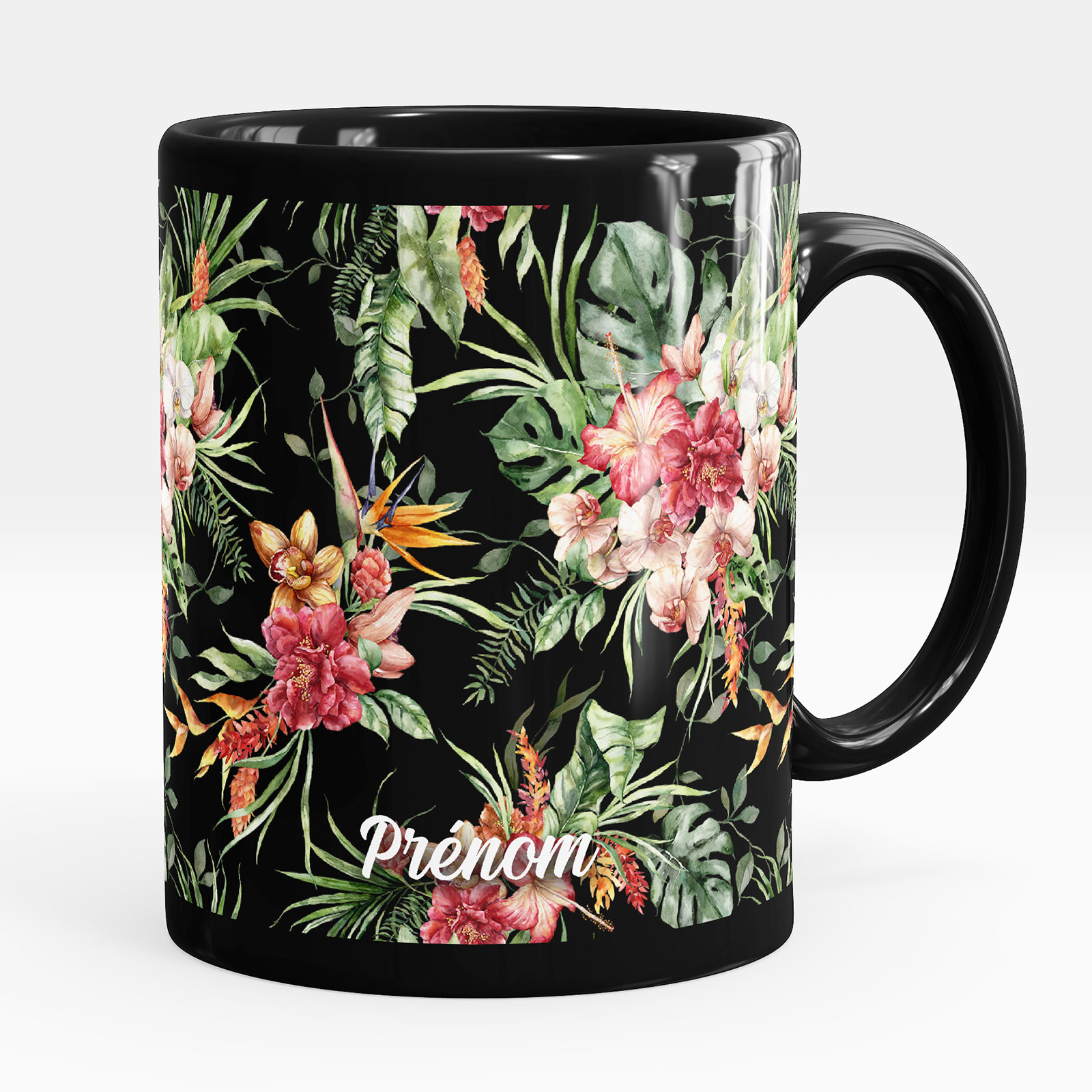 www.lumalea.es > Tazas / Botellas > Tazas Negras Integrales Adultos > Taza personalizada totalmente negra - Flores